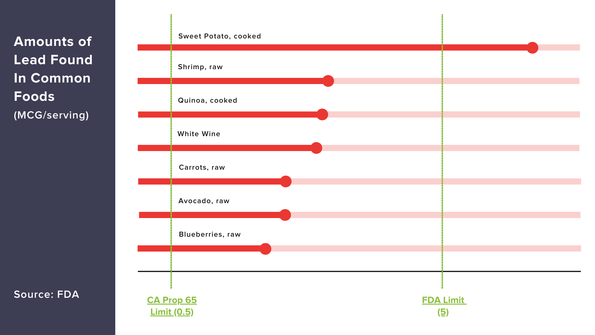 California’s Prop 65 standards for substances like lead and cadmium are significantly stricter than those set by the EPA (Environmental Protection Agency), FDA (US Food & Drug Administration), WHO (World Health Organization) and other global bodies.